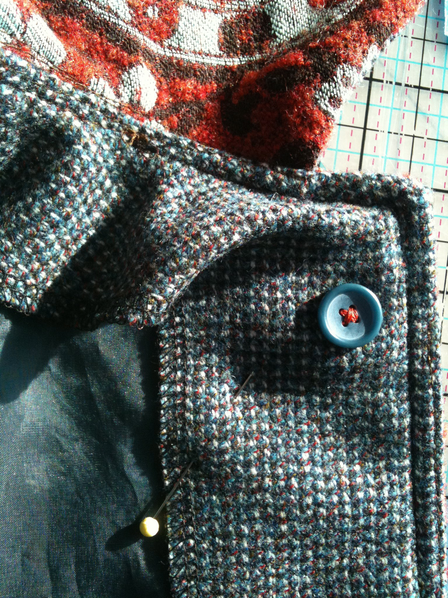 And then there was this pucker at the top corner of each center. At least it was symmetrical. With a buttonhole right next to it there wasn’t much I could do so I pressed it as well as I could and left it there! Can you tell I was getting to the end of my patience for this project?