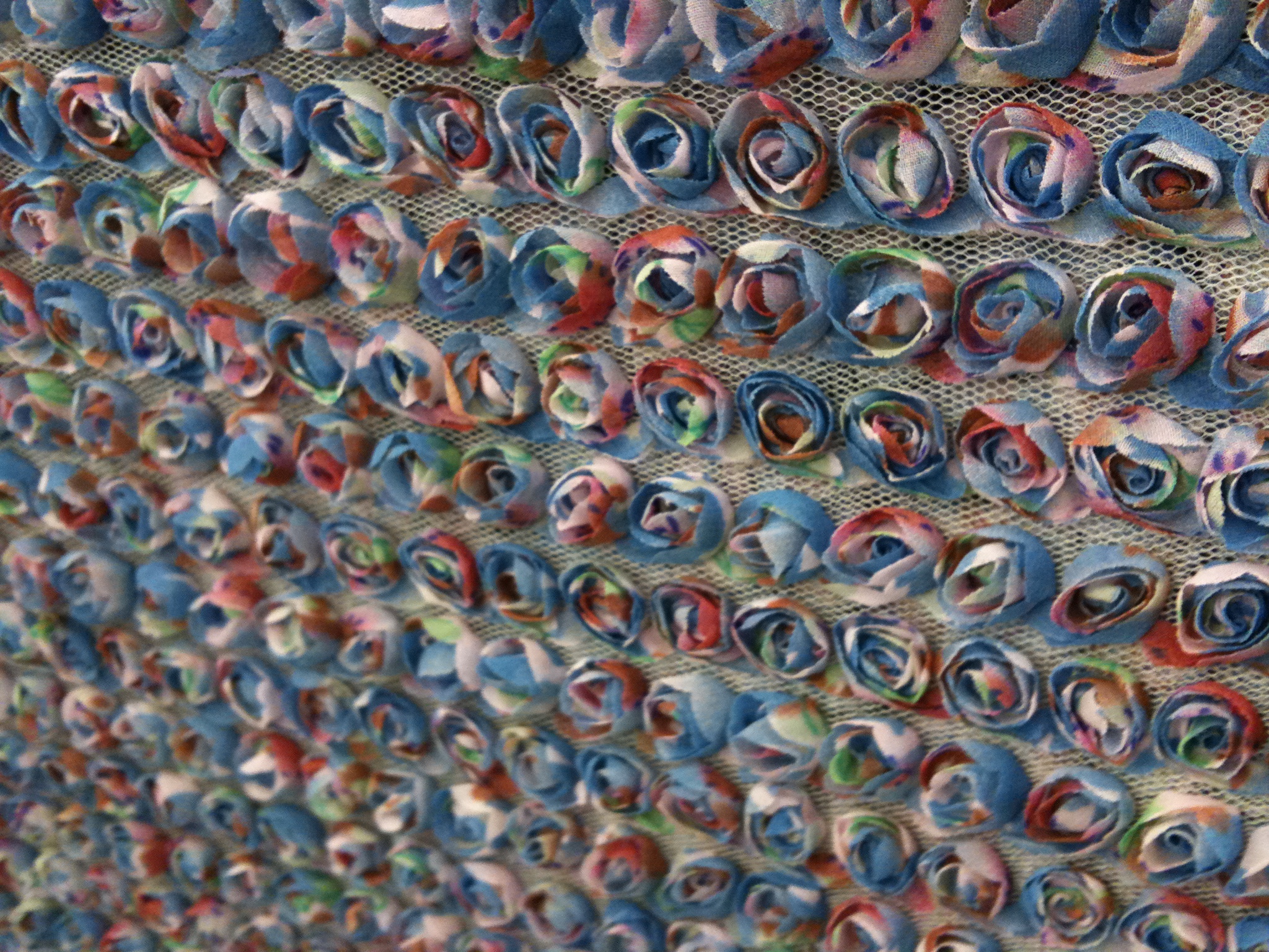 I am the proud owner of this fabric, with the aid of a 40% coupon and am very excited to explore the possibilities of both the flowers on netting and the flat fabric used to make the flowers.