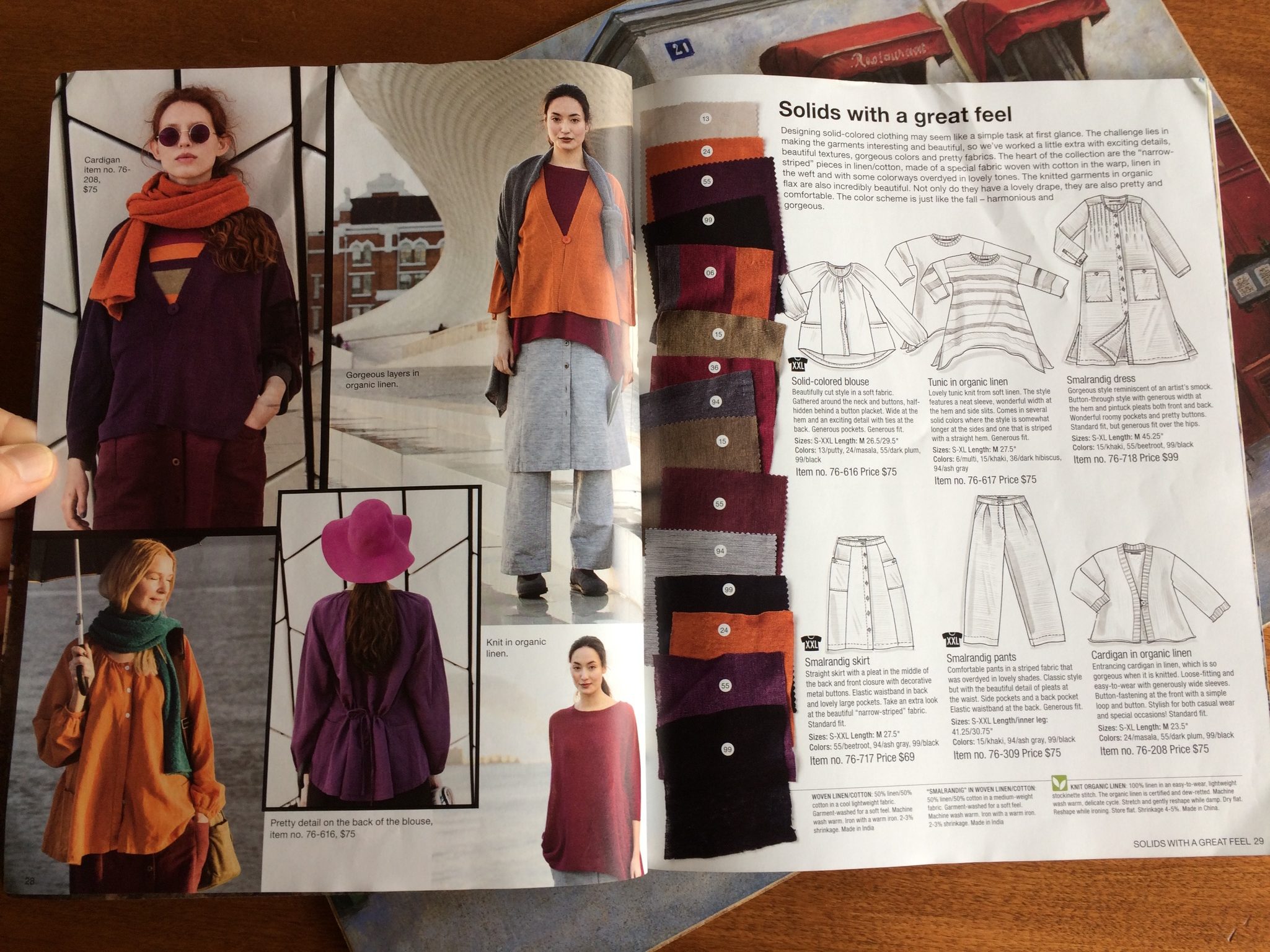 I forgot to bring this catalog to Club but if this style appeals to you, I would highly recommend taking the time to go to the website and order the catalog. Line drawings, photo shoot locations, prints, colors…better than a fashion magazine and free! http://www.gudrunsjoden.com