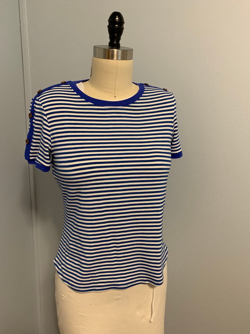 When I saw a RTW on a friend it was so cute and I knew I had the pattern so I was anxious to give it a try. This was not a win! I did not care for the fold nor the dropped sleeves. I got rid of the fold and recut the front and made a basic tee that I will more likely wear.