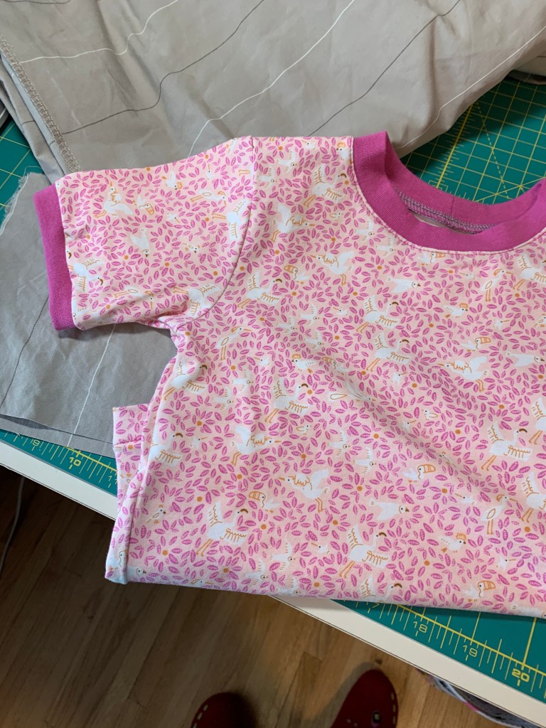 Sew Your Roll- Child’s pink tee with bright cuffs.