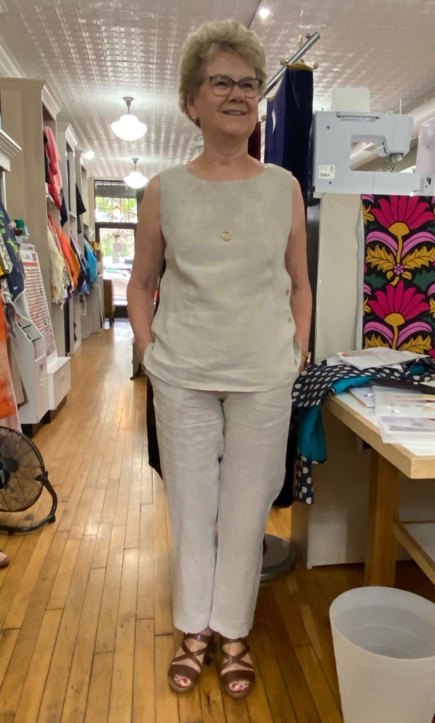 Another TNT pattern. I have made construction changes – the fly is eliminated and I use a one piece waistband – I am now able to sew them up in just a couple of hours.