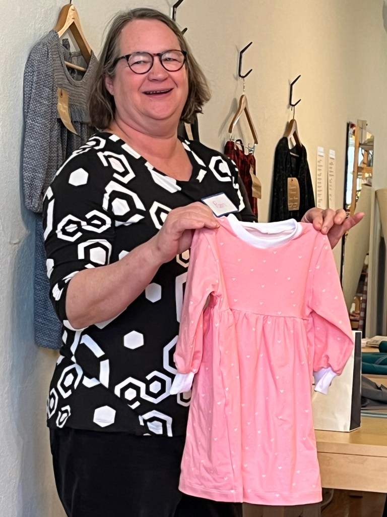 Bailey’s sweat shirtAlabama Chanin details Marceau Top/Sewing WorkshopSimplicity 9744Second Sewing for Kids/Kwiksew dressCap Sleeve Vest/The Assembly Lineand Persephone Pant/Anna AllenMerlo Field Tee/Sew House Seven in cotton knitTaborVest/Sew House Seven in sweater knitFable Dress/Twig and TaleTwo bamboo Toasters (Sew House Seven) on two totally contrasted testersDesigner detailfrom photo above