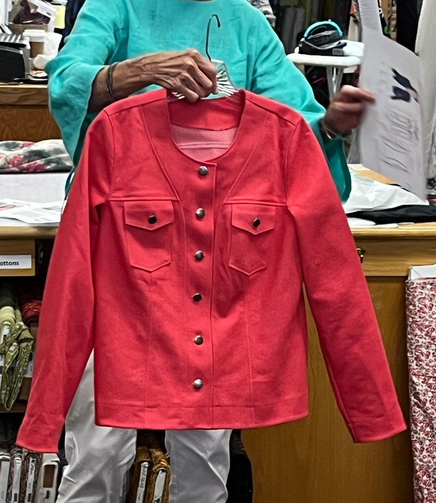 1. Fitting adjustments include petiting between shoulder and bust and removing bust dart. The jacket is short in length so next time I may lengthen at the hem. Also the sleeve is too wide at hem – I need to remember to narrow width from elbow to hem next time.