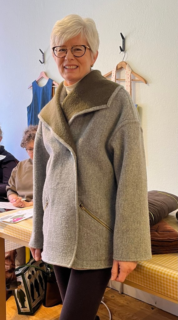 After an exhaustive search for a pattern that had the same neckline, I chose Vogue 1648 because of the funnel neck. Surprising how hard it is to find this particular neck style. I found another pattern “MonoPattern Oversized Coat” but it was also a funnel neck even tho the photo didn’t show it that way.