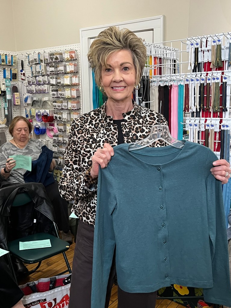 Elsbeth (from TV series) called to me for this sweater and fabric (the bow is hard to see in this print)!! It was a fun make-again, a wonderful video tutorial made it easy to figure out. Many numbered seams as in Burda patterns but that made things clear. Underarm gussets were challenging but that’s what gussets are-IMHO.