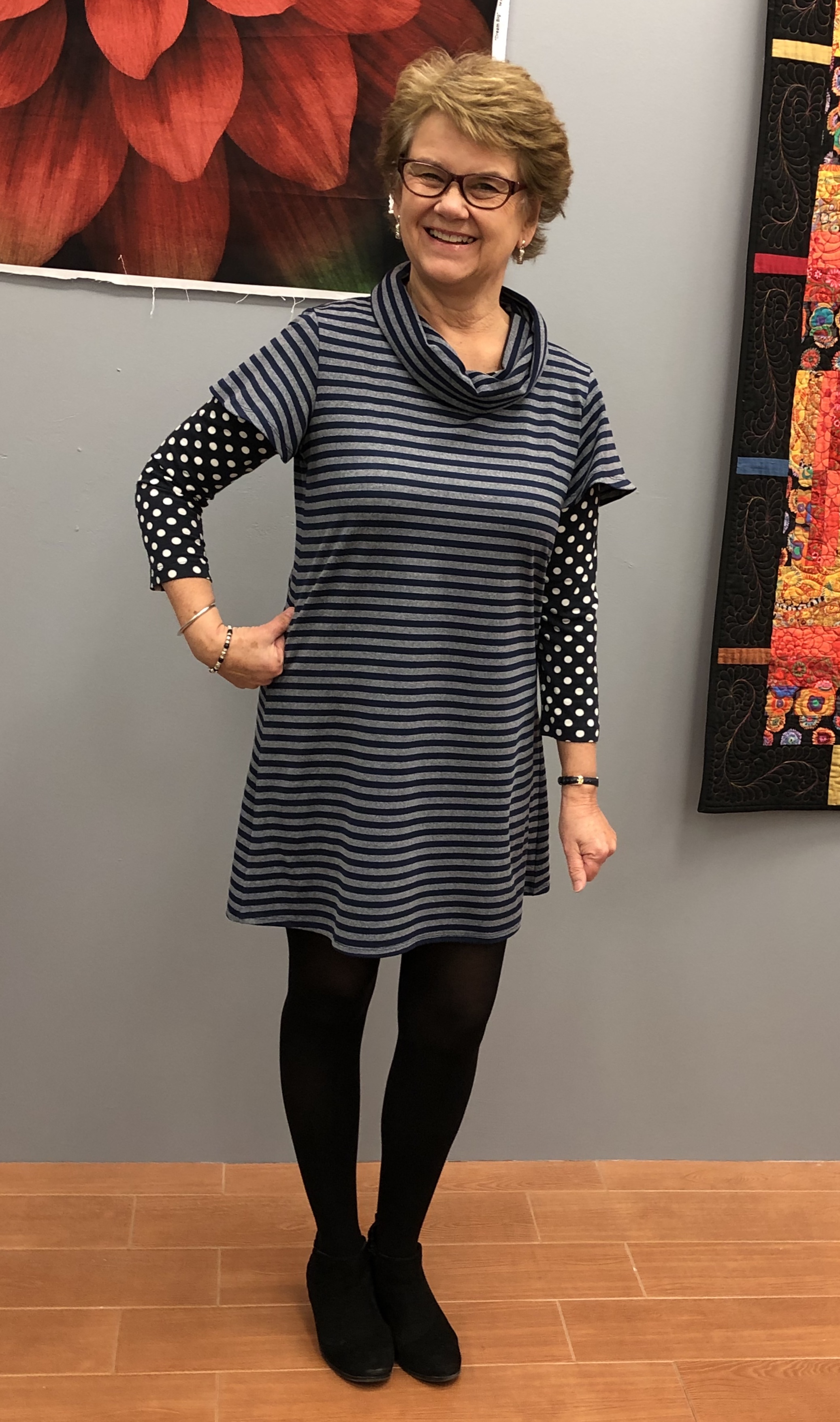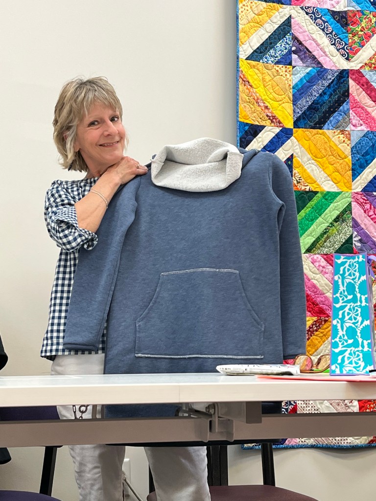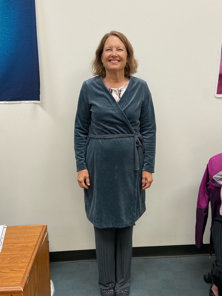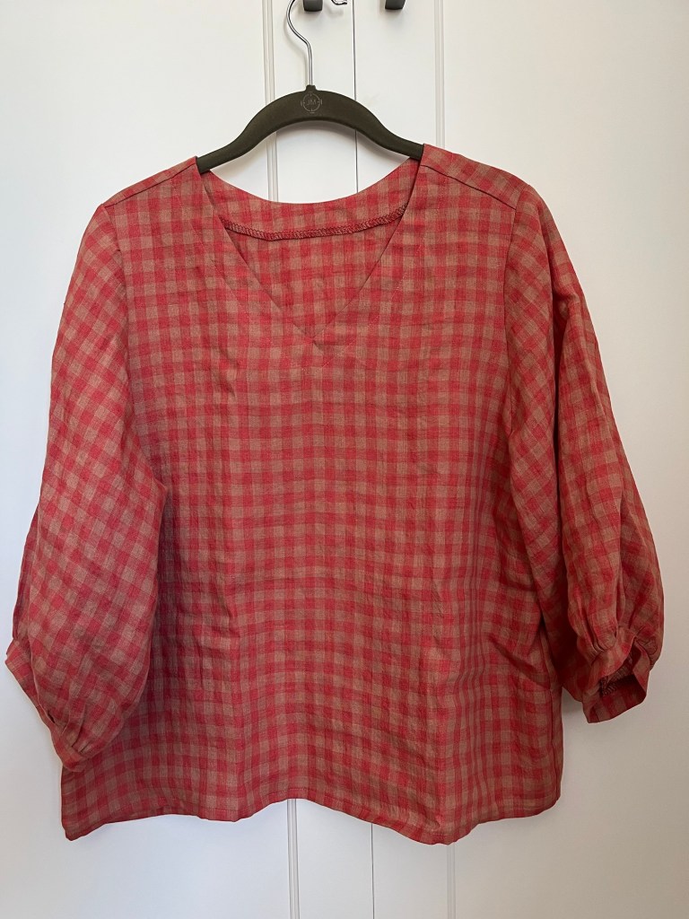 3. Very happy with the top. Leveled the hem and sleeve cuffs are to pattern and serged to sleeve after sewing the side/underarm seam.