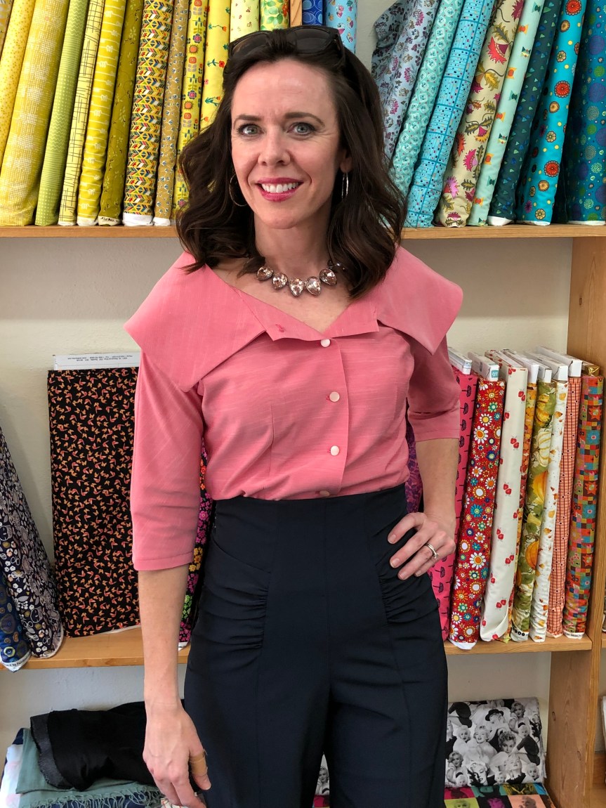 Sew Chic was at the Puyallup show and caught Katie’s attention-this is the Gatsby Pant and Portrait Blouse. Score!