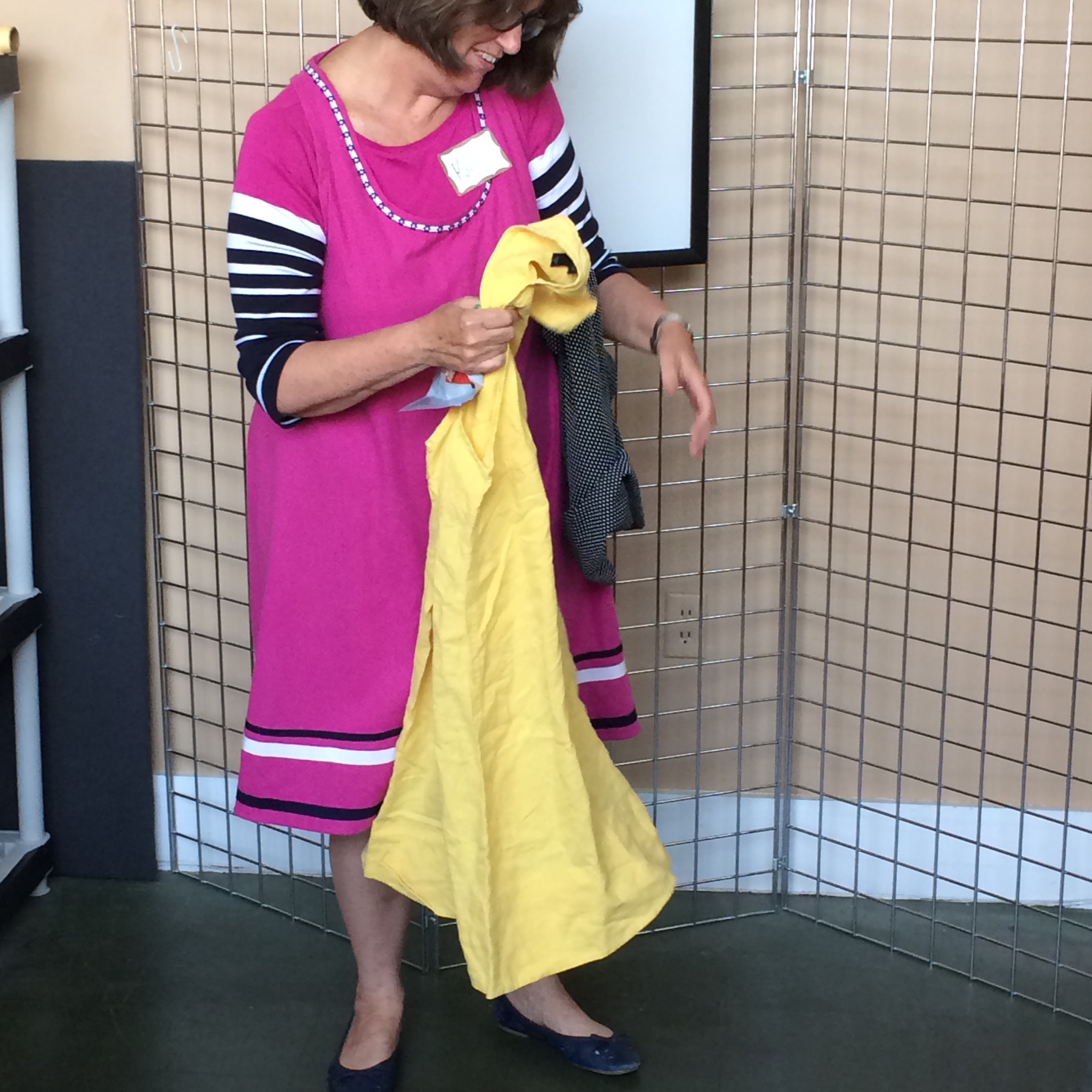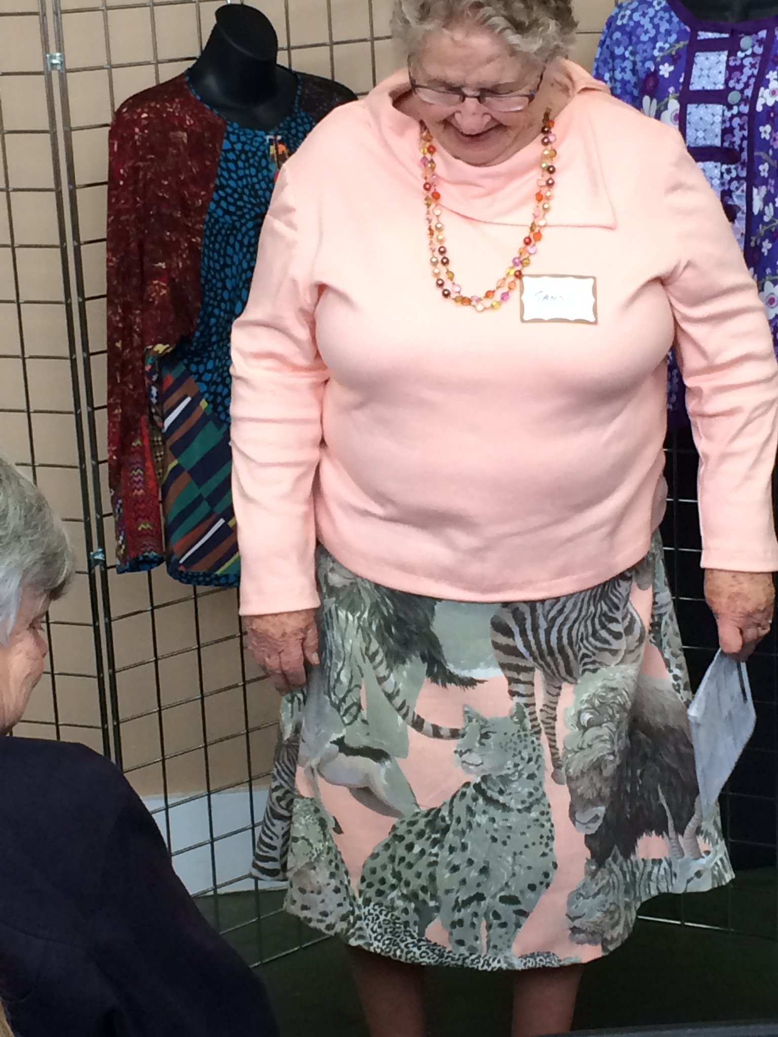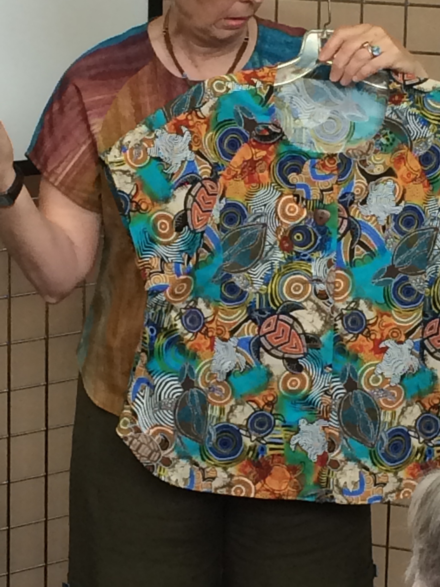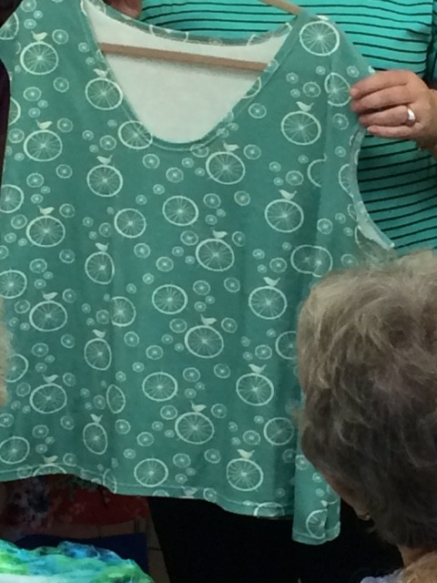 Just a bit behind with all this beautiful summer weather to be out in but here are some of the June show and tell creations for your viewing pleasure. My daughter, Hilary, was the guest model and photographer. We have her to thank for the collage idea which we will repeat-now that we’ve remembered it!