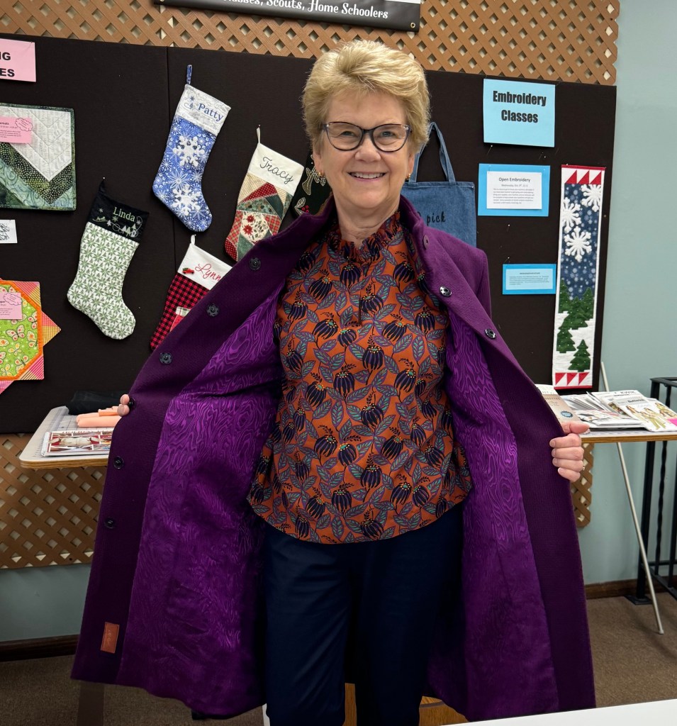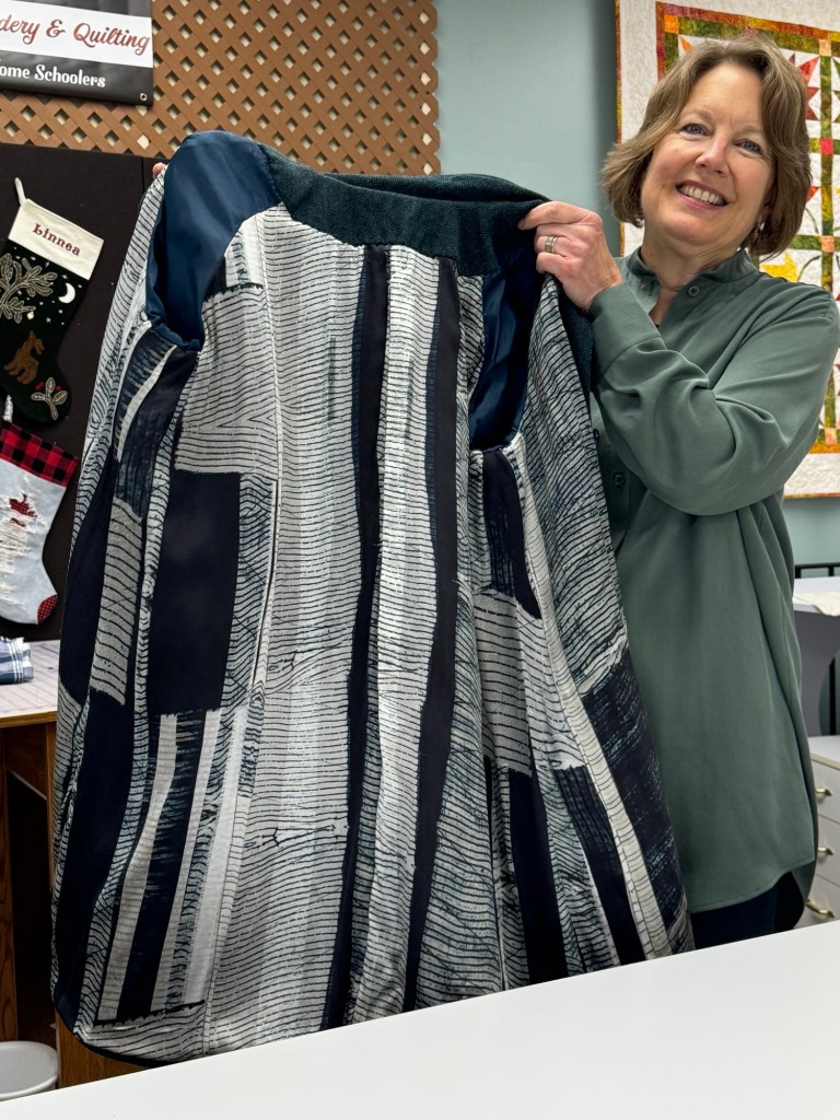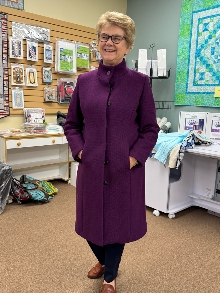 Did I say we ate well, slept well and wanted for nothing?!?! It was a wonderful retreat, couldn’t have asked for better teacher, peers, food, lodging, etc. We both got our coat linings bagged and returned to Minnesota to add buttons, buttonholes, press and snip threads. Success!