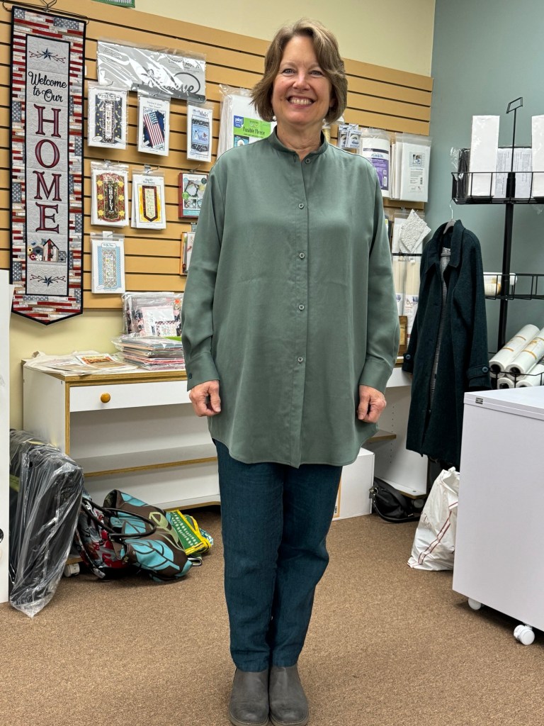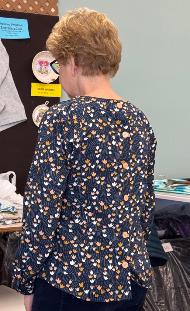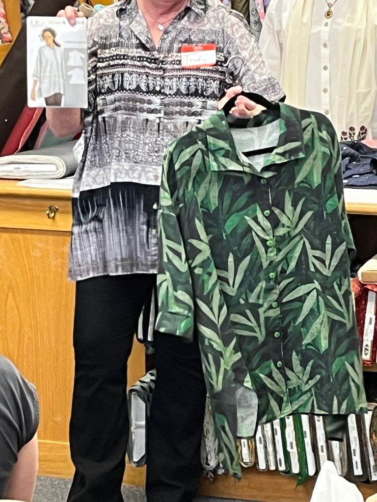 3. I like the pattern, especially with the “exit interest”. It is a nice change from a classic shirt. The fabric is one of my favorites to sew.
