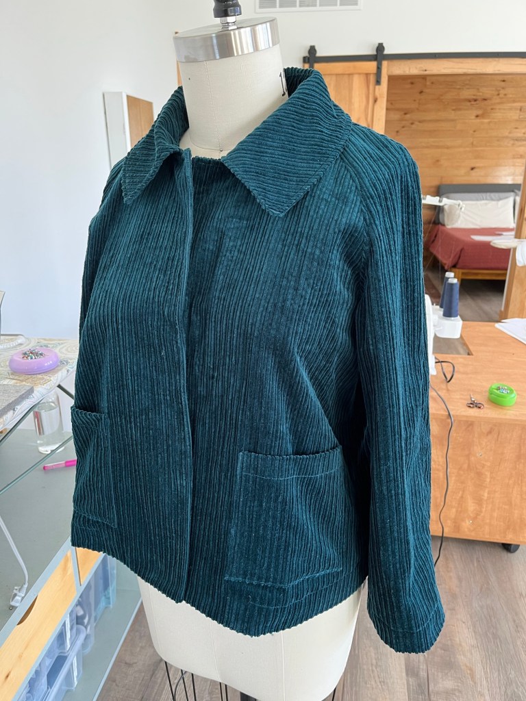 I like this make but I wish I would have considered the Jordan Jacket by Serendipity Studio. I made that jacket about a year ago and it has lots of pluses such as welt pockets, placket interfacings and excellent collar and sleeve placket construction methods. I think the front pocket panel could be eliminated.