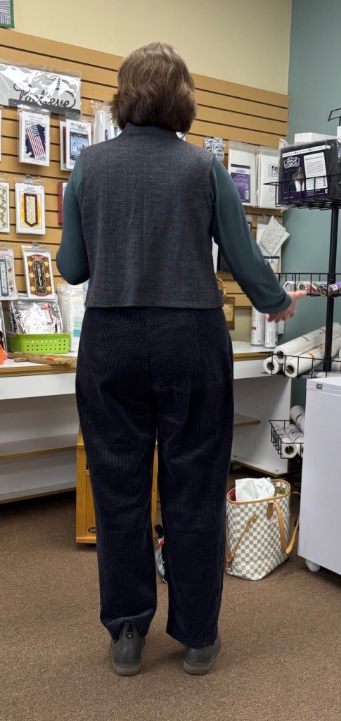 I especially like the shaping of the vest and the faux welt pockets. I eliminated the back ties – too fussy for me.