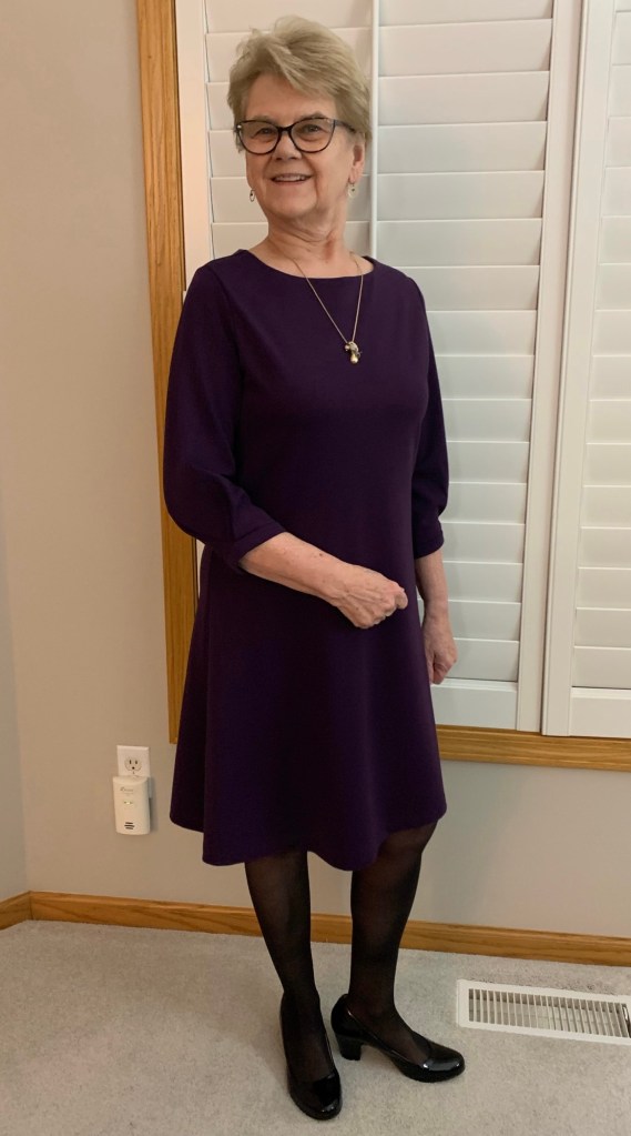 Cut out a size 12 going to 14 at hips. Another sewist had warned me that it was close fitting and she wasn’t wrong-I let out side seam allowances as far as 5/8” seam would let me.