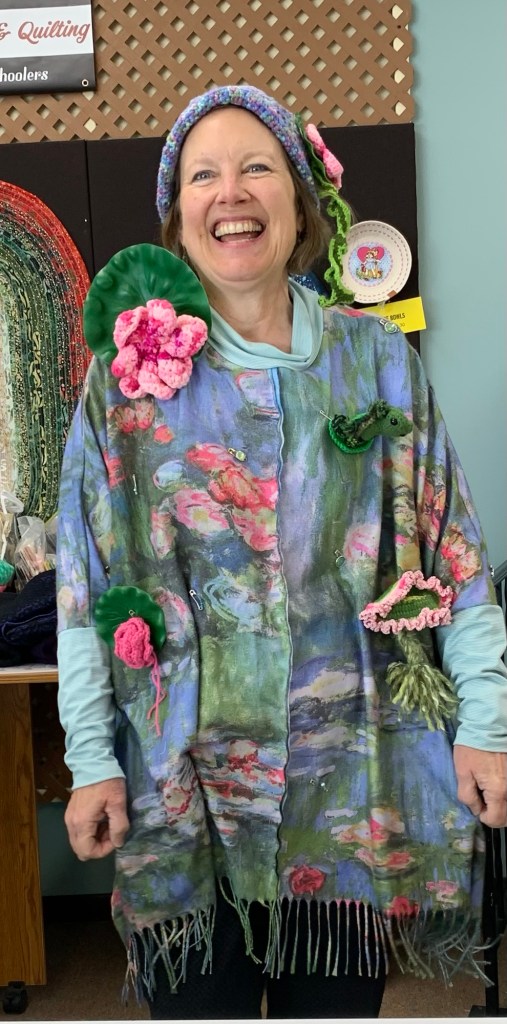 It’s fun to be involved in somebody else’s creative process so I couldn’t say no when Julie showed me what she was up to: a showcase to highlight the programs at the Rochester community center 125 Live. Someone from the knitting and crocheting group donated the scarves and jewelry and crocheted the hat and doodads 🙂