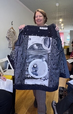 Victoria was busy last winter hand embroidering skirts-Vogue 1898 became Vogue 8577Part of mother of the bride ensembleNew Look 6145Fjord Cardigan/Friday Pattern CompanyZakopane Shirt/Itch to StitchCottage Shirt/Sewing WorkshopLondon Shirt/Sewing WorkshopPattern unknown/Ice dyed silkVogue 1312Love Notions Aurora DressStyleArc ShacketGinny’s Metallic Knit in favorite tee patternSelf drafted bag in corkLove Notions Caprice Skirt in rayon3-D Print on knit in favorite tee dress