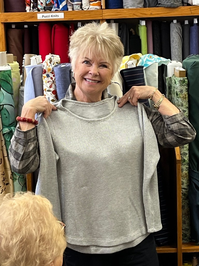 1. Caroline showed this top last month at Ginny’s and it looked like fun. I made an 8 at the bust and 14 at hip. Pattern calls for fluid knits-cotton knit probably wouldn’t twist.