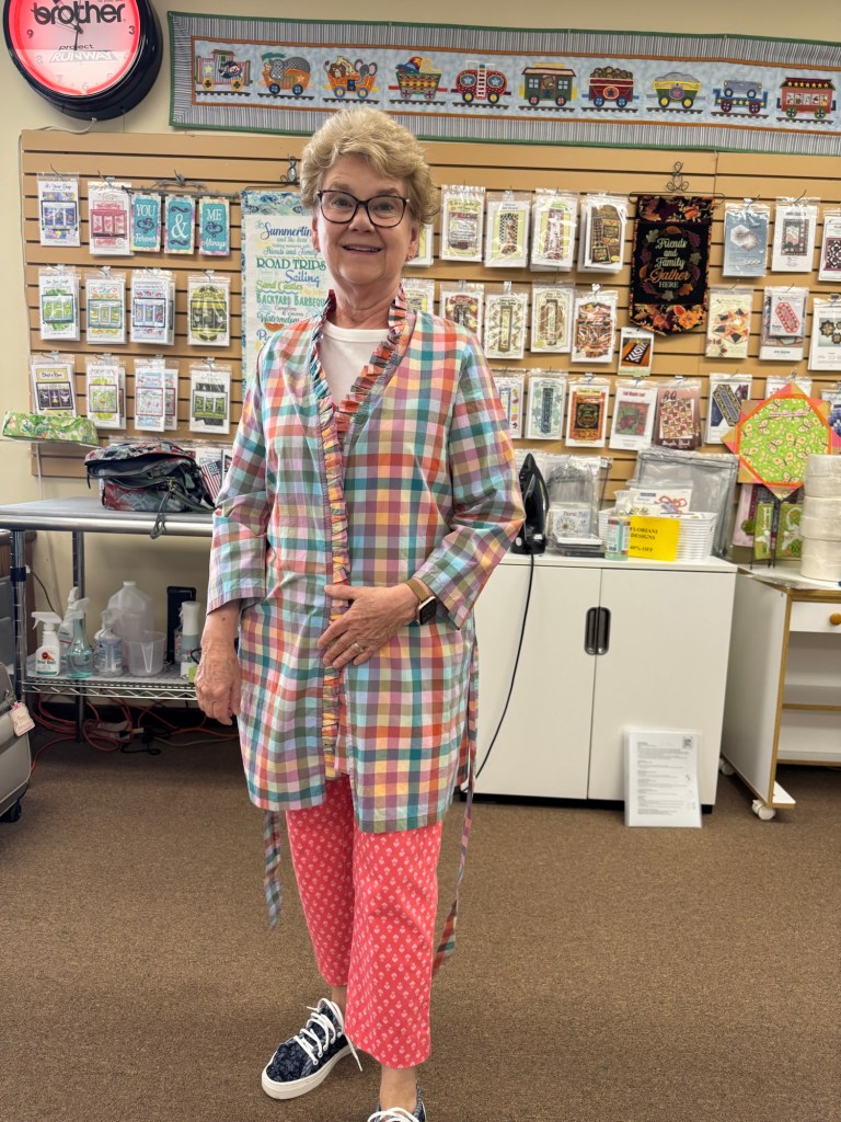 Length adjustments included petiting between the shoulder and bust on fronts, back and sleeves. I chose to do the knee length and shortened that length 2 inches.