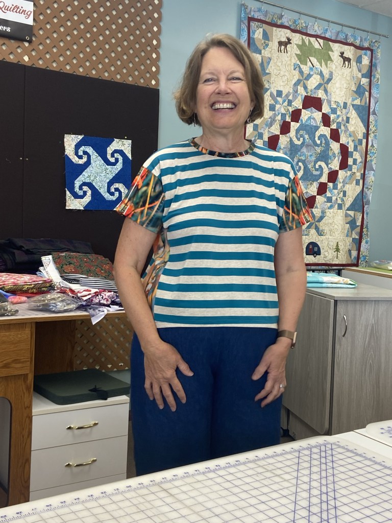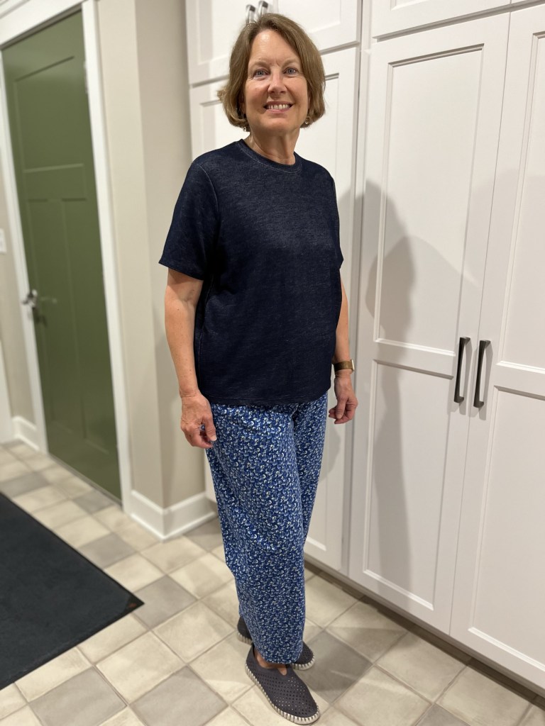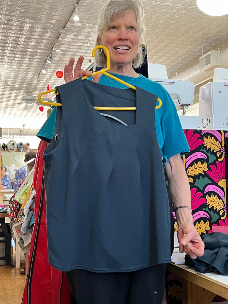 1. I liked the causal style of a RTW blouse and tried to copy the fabric and style . The fabric worked well but I may have made the blouse too short – again!