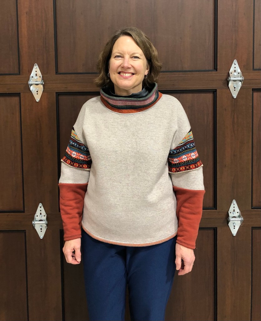 Neck facing is activewear knit (pattern called for stretch interfacing so I thought it would do nicely as neck must stretch some to get over head.
