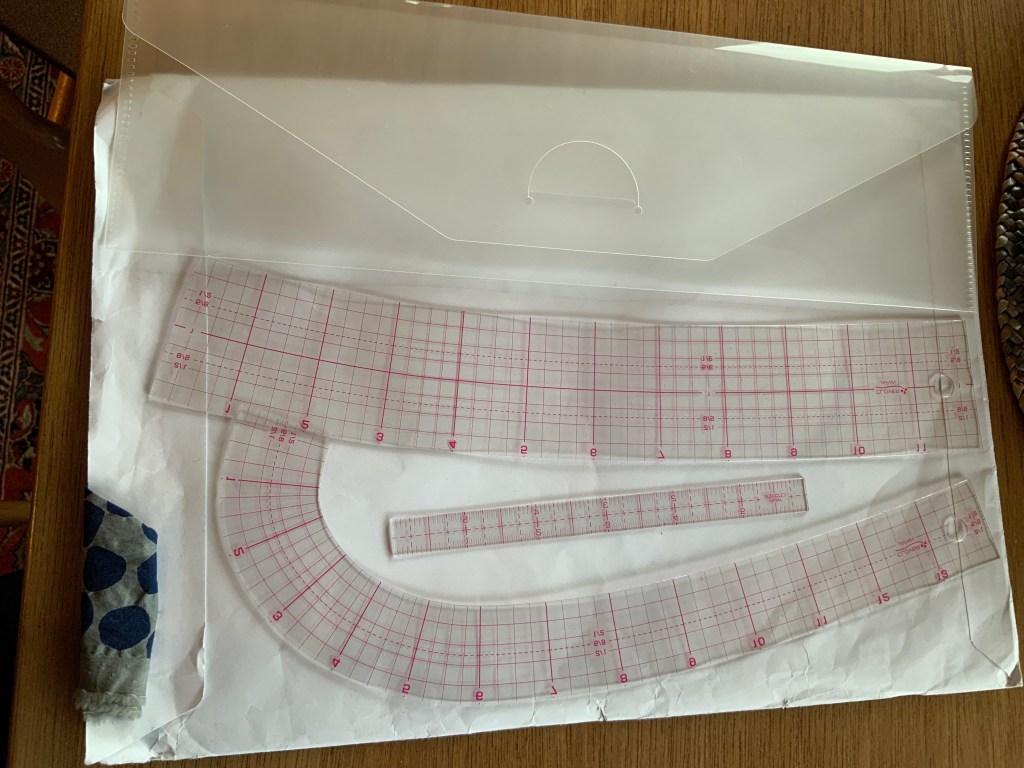 Next up is a set of small rulers that are perfect for tracing patterns-Burdastyle patterns, here I come. I love to use rulers as I trace. My lines are so much more accurate. And there’s a plastic envelope 🙂 Again, Amazon carries these rulers.