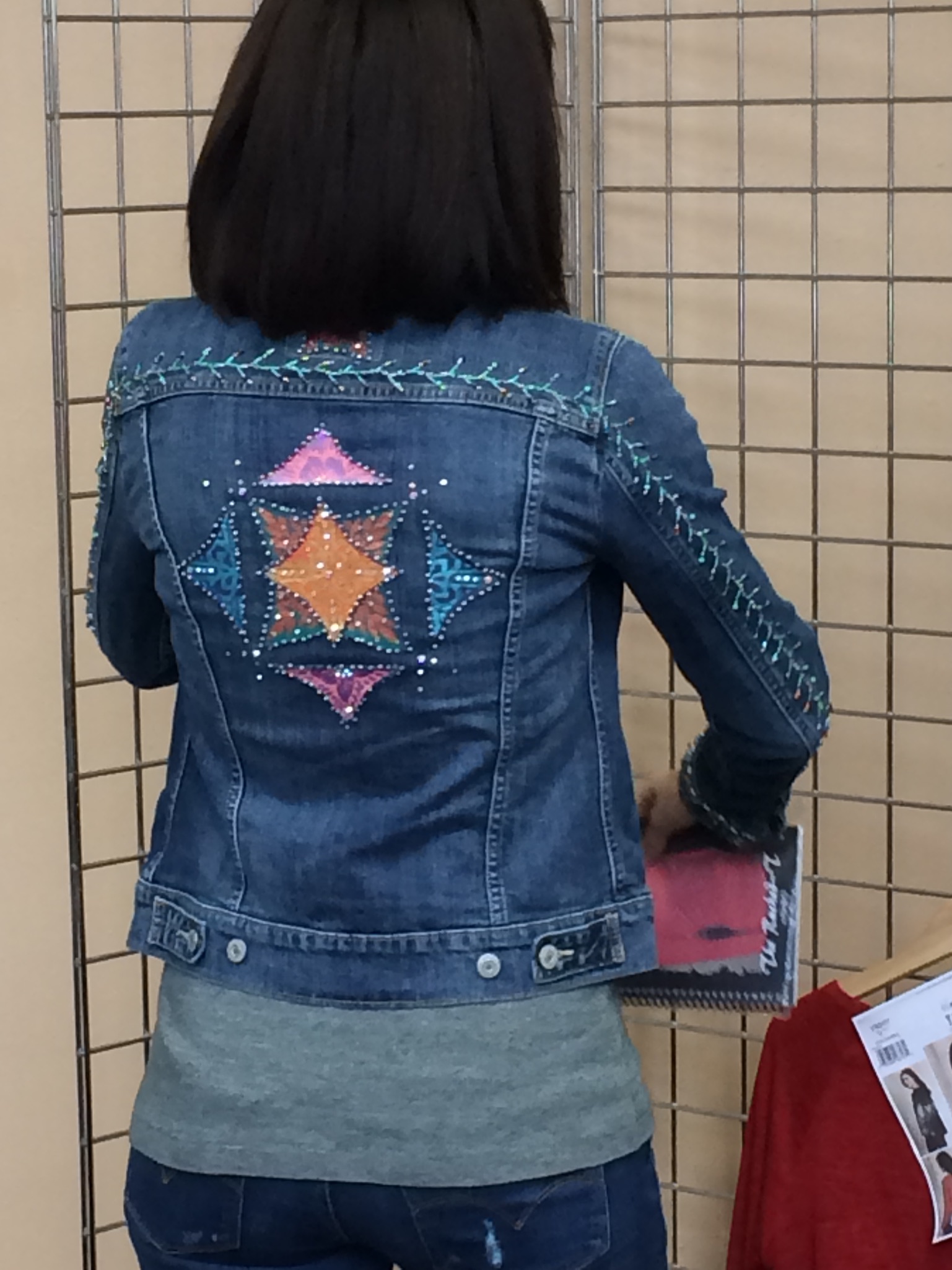 The four classes I attended today included one on monograms to use with my embroidery machine, a bag the jacket class with Connie Crawford, an industry insider class with Louise Cutting and an embellishing class by Barbara Crawford ( no relation to Connie). Lots of good ideas and practical information. I had a personal fitting with Connie Crawford which was a great experience as I have been focusing on fit with the last few things I have made. Very helpful.