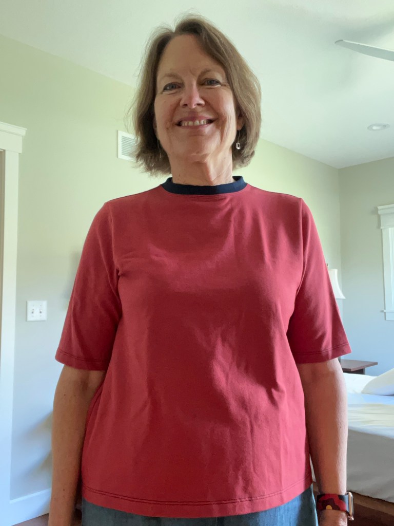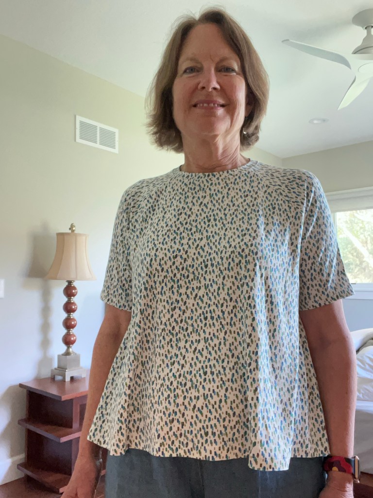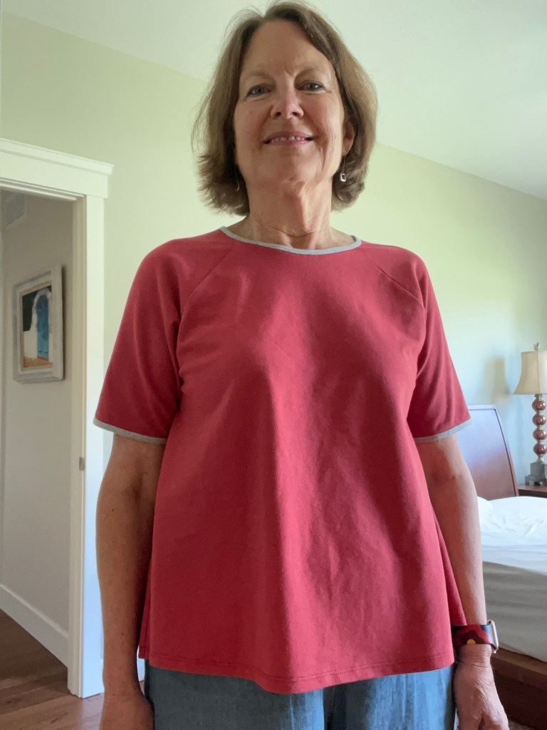 I was thinking all along that I should just use 6990 and tilt it out at centers front and back to get the same effect as the Makers Atelier tee. After all, I already knew it would fit around arms, etc. The rayon knit also hangs better and looks more like the inspiration photo.