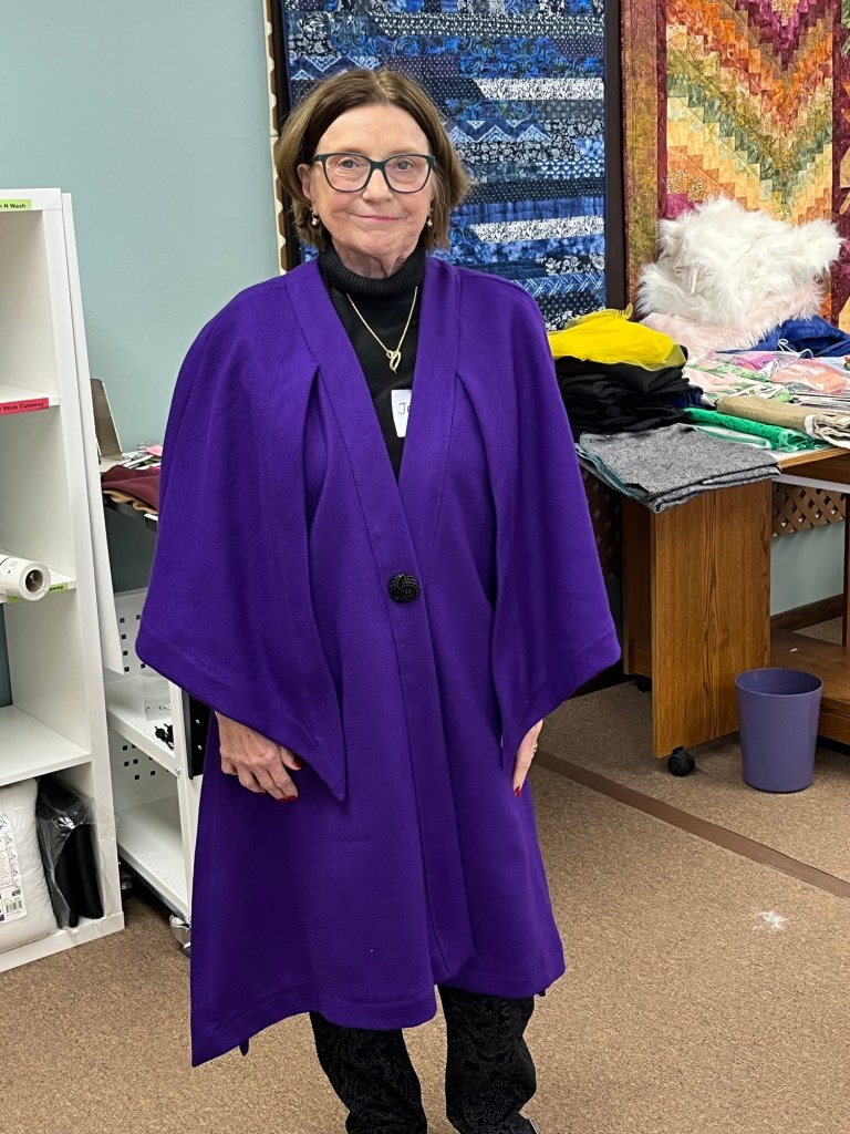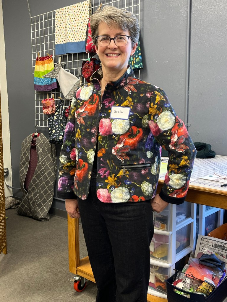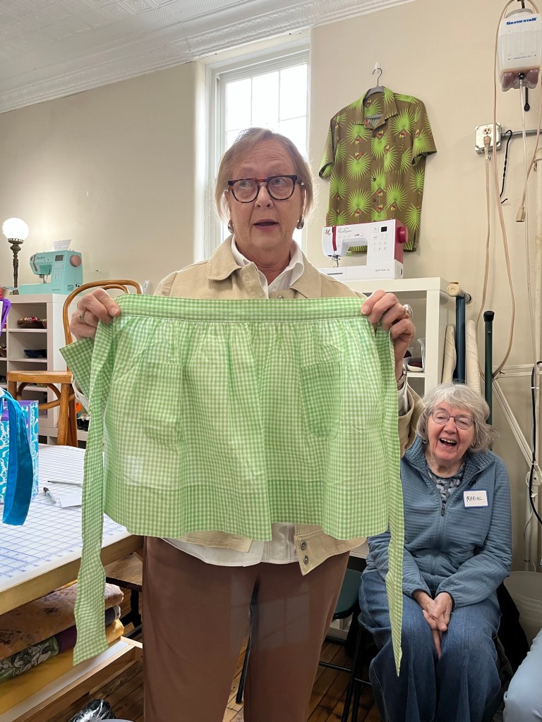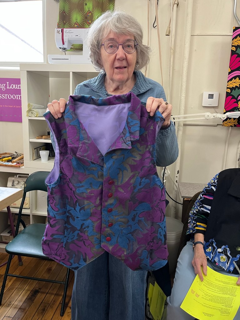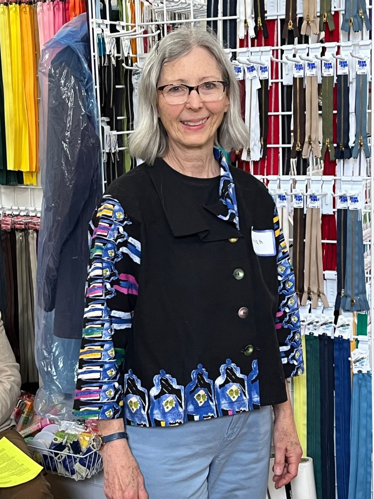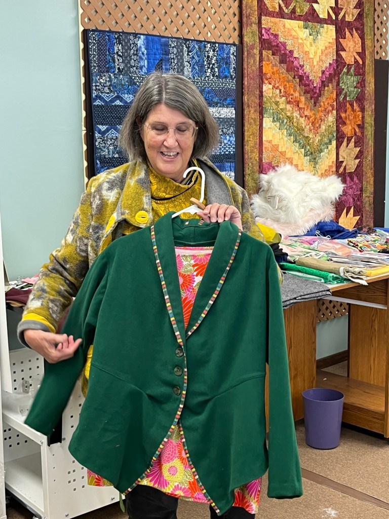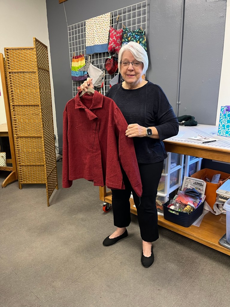 Lola Dress by Victory Patterns in a cozy knitSew House Seven Revel Topper in silk and Tessuti Madden SkirtCostume sewing for a lucky high school drama groupSewing Workshop San Diego Jacket and some creative piecing!Made by Rae Beatrix and Papercut Palisade PantsBack detail on the Beatrix No, Rosemary didn’t make a jacket for Bernie 🙂 It’s for her husband!But Bernie was a very cooperative model! Pattern is Merchant & Mills with a cotton math themed red lining and Bemberg sleeve lining-lucky husband!!Somebody opened up old boxes and found her earliest makes-the gingham apron!!The skirt and button topAnd this is how far she’s come!! Butterick 5616 jacketAnd some beautiful pintucks added to Butterick 6376 blouse