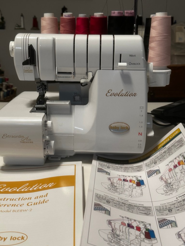 This is a combination Babylock Evolution which means it will do 4 thread overlock and coverstitch. It’s a few models back and not as large as the current models. Only been used about 6 times. $900 or best offer. Please email materialgirlsewing@gmail.com if interested.