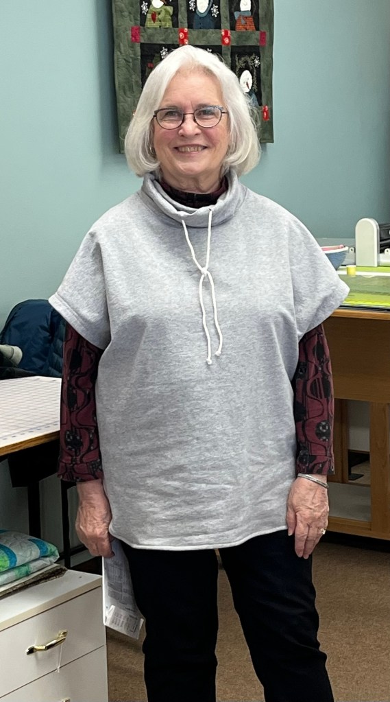 Ran out of fabric for the double thick and wide neckband but very happy I kept as is-nice and cozy.