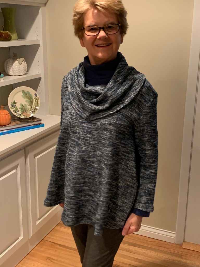 This is a favorite pattern. I am finding this time of year I want my neck to be warm so this Tee and the short sleeve Turtleneck meet my needs as we move from spring to summer.