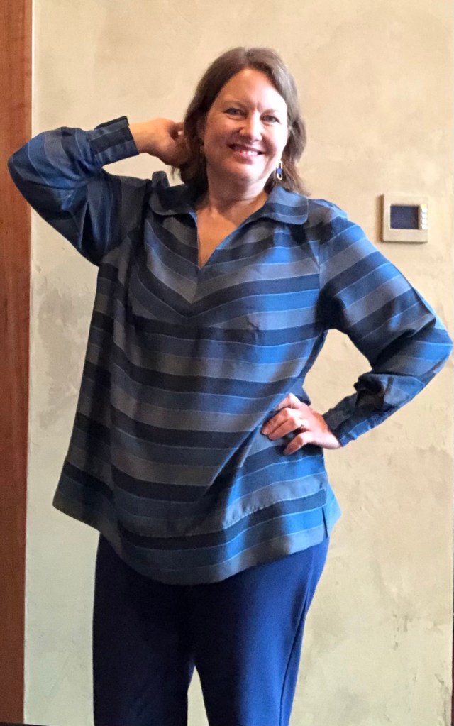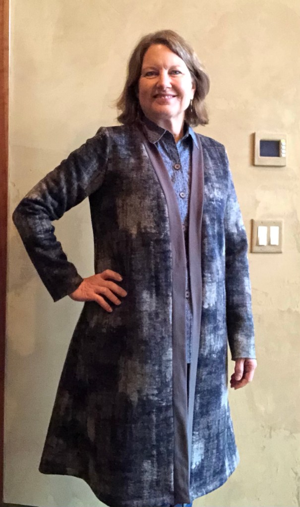 1. This is a favorite pattern-I’ve worn out the other one! Love the big but not too big size and the collar with minimal bulk at center front, the pockets, the length, everything!!