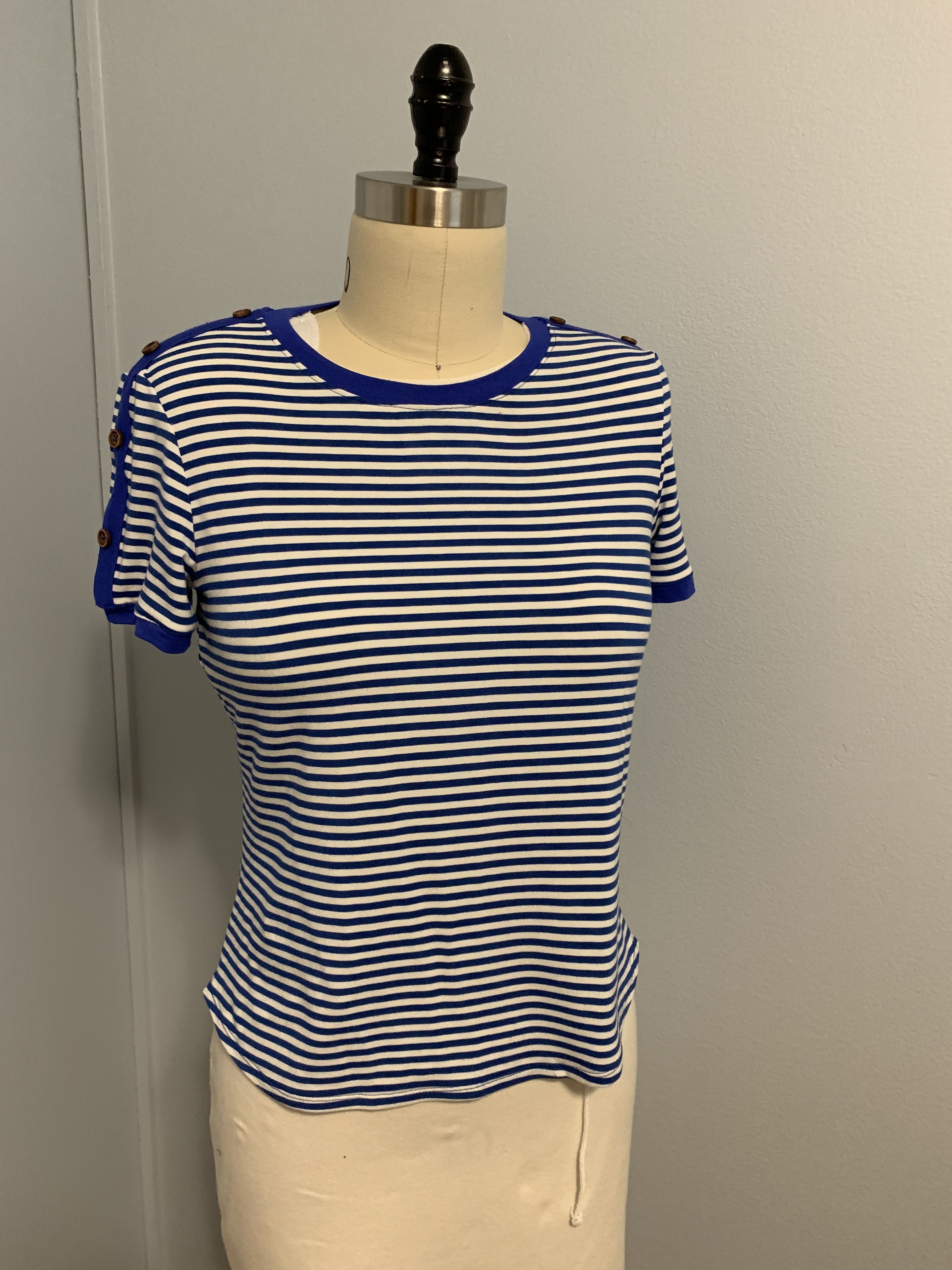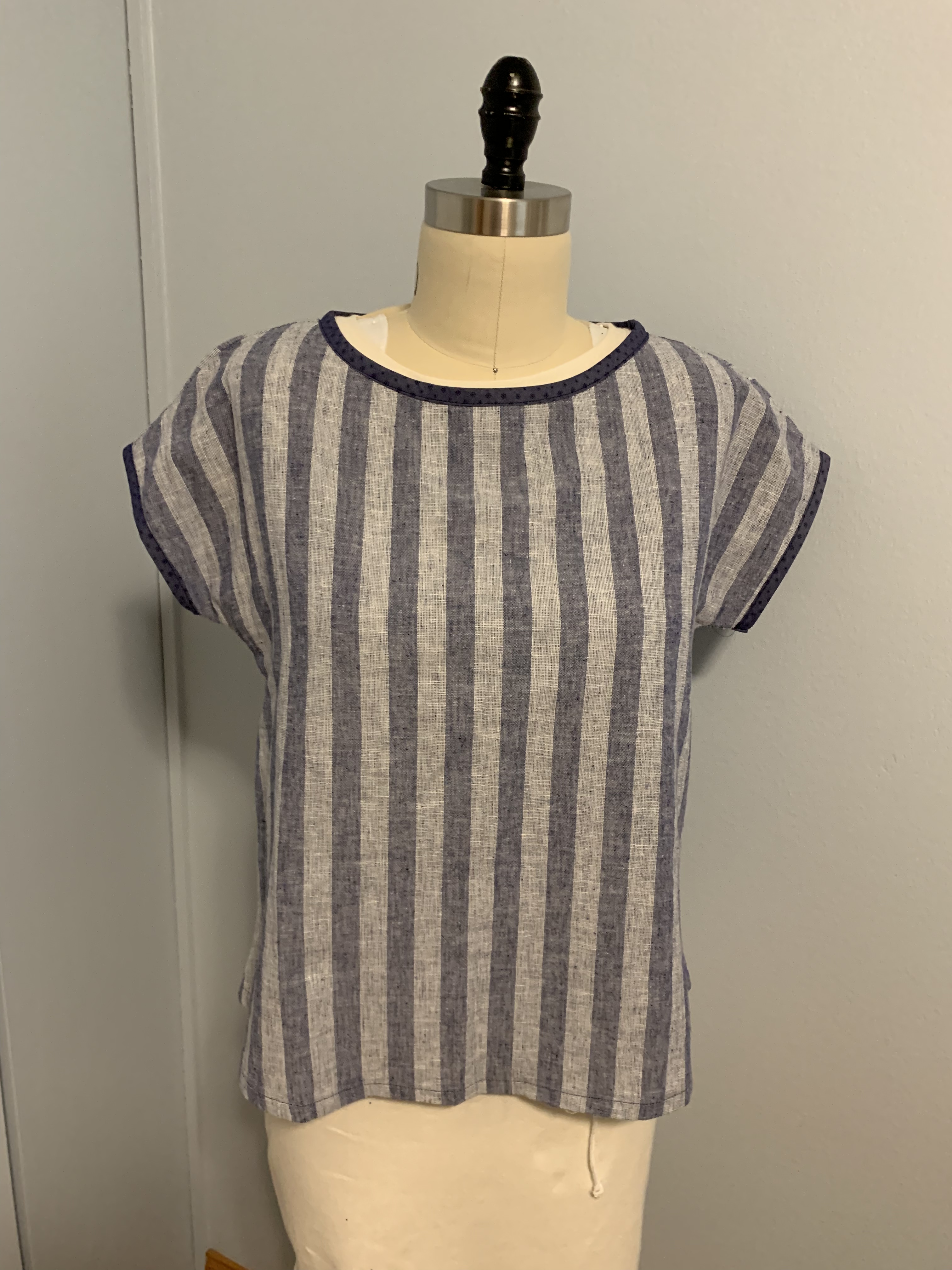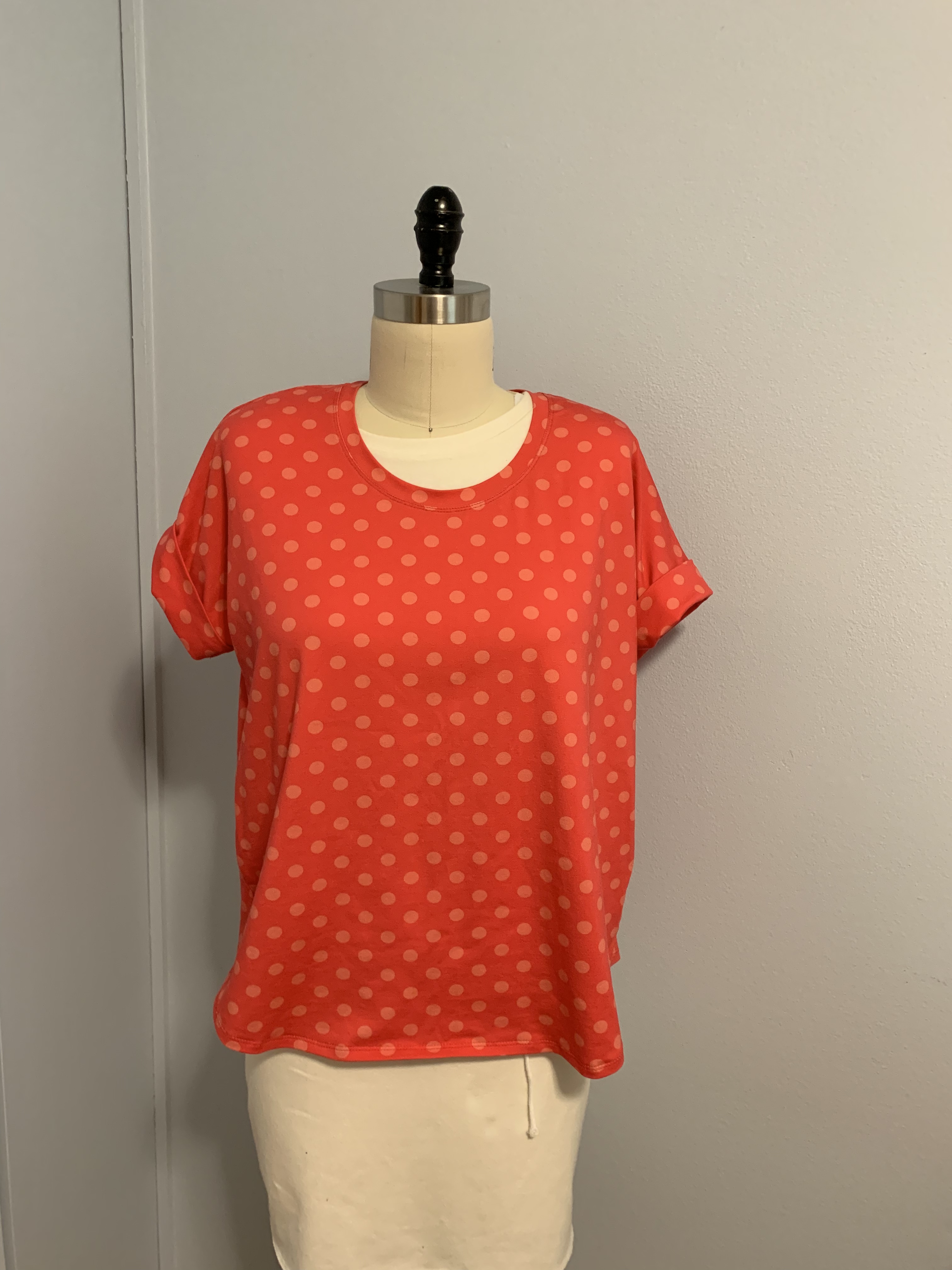 When I saw a RTW on a friend it was so cute and I knew I had the pattern so I was anxious to give it a try. This was not a win! I did not care for the fold nor the dropped sleeves. I got rid of the fold and recut the front and made a basic tee that I will more likely wear.
