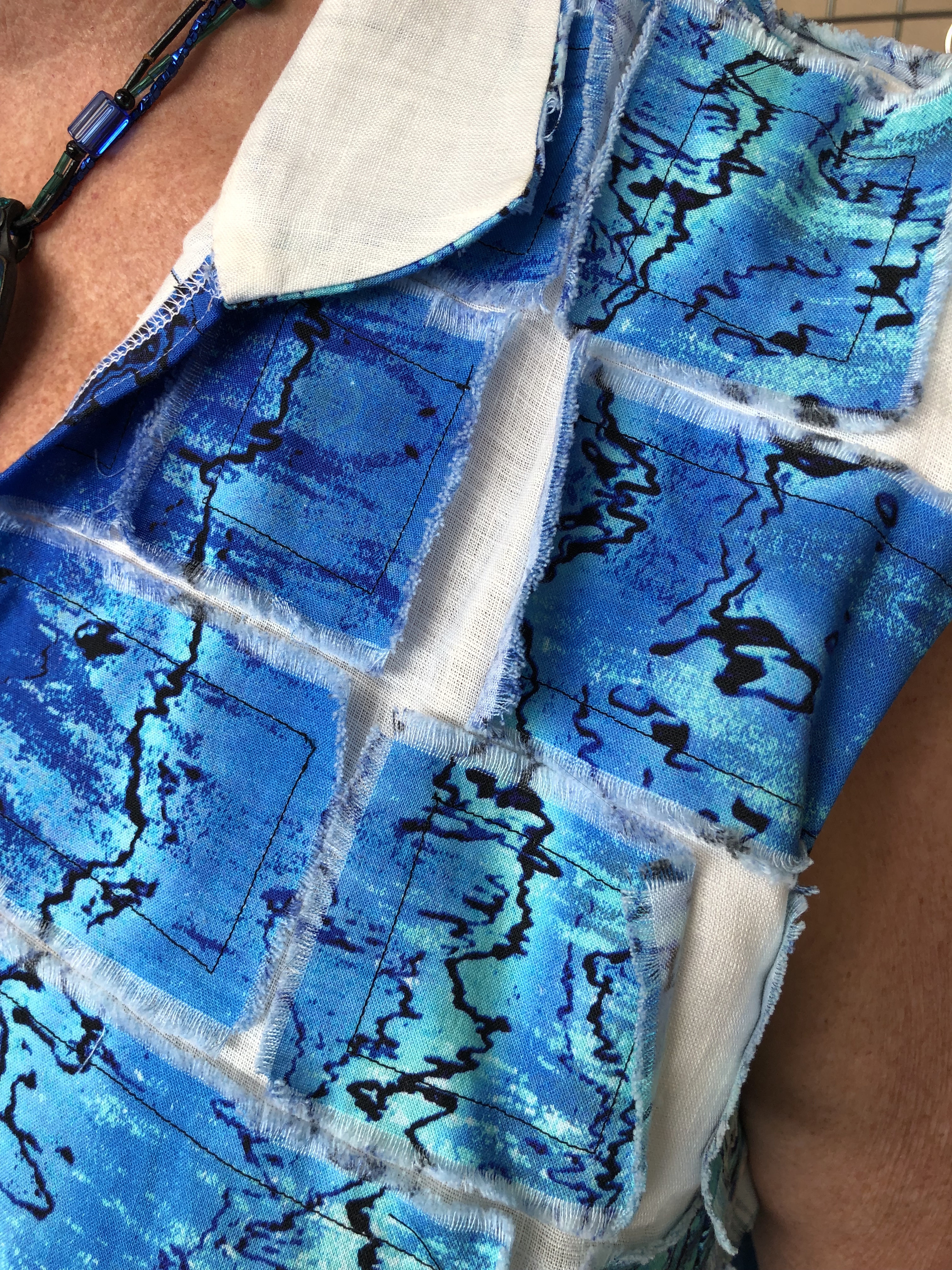 Use the border of an embroidered chambray at the neck instead of hem for a different look to the quintessential (for now) ruffled sleeve. We’re offering this class during May and June at Joann.