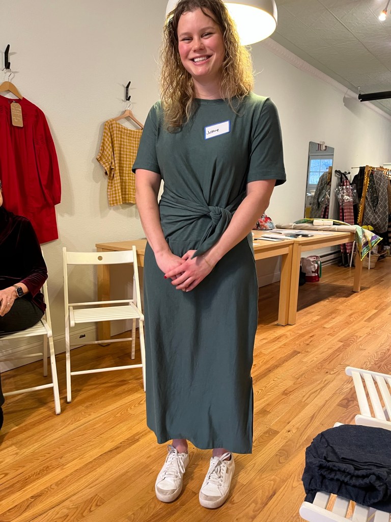 2. Design changes I made were shortening the front slit and softening the curved hem.