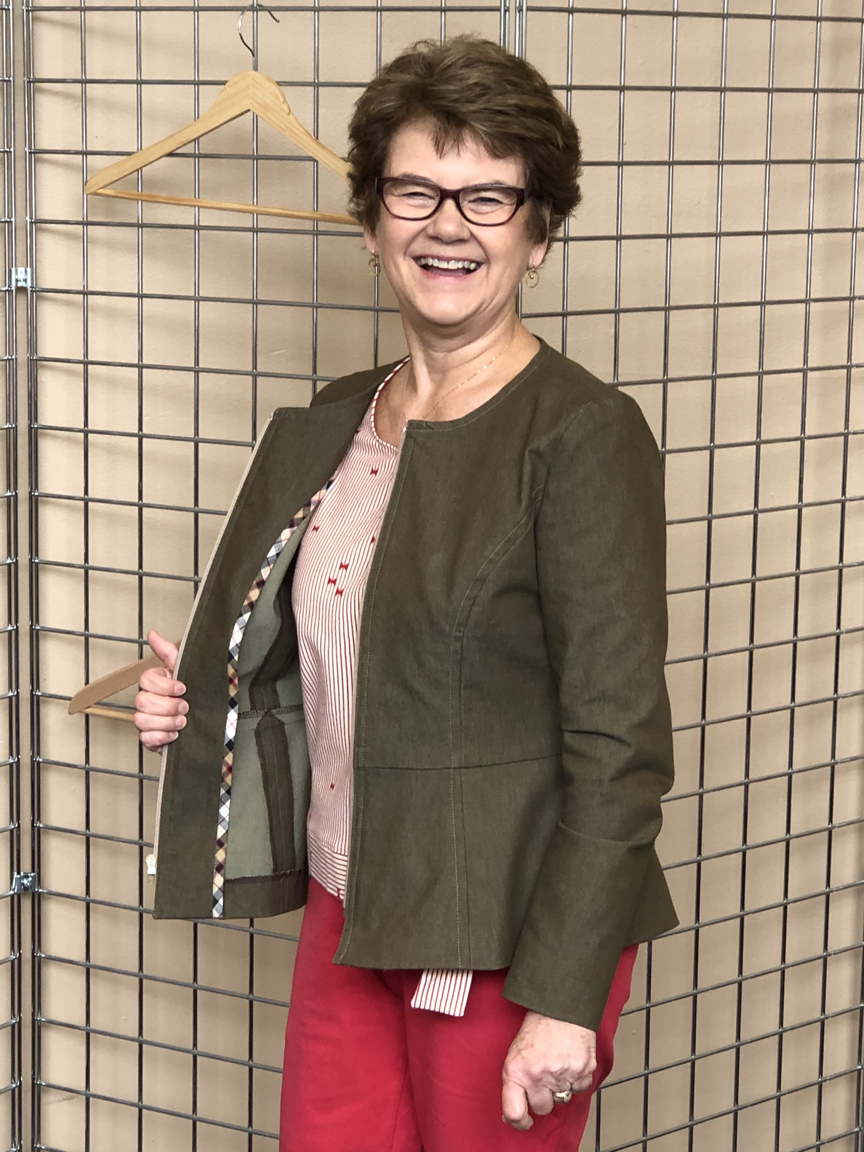 Olive/Brown Denim Peplum Zip Jacket, Burda 6334, View B, Stretch Denim