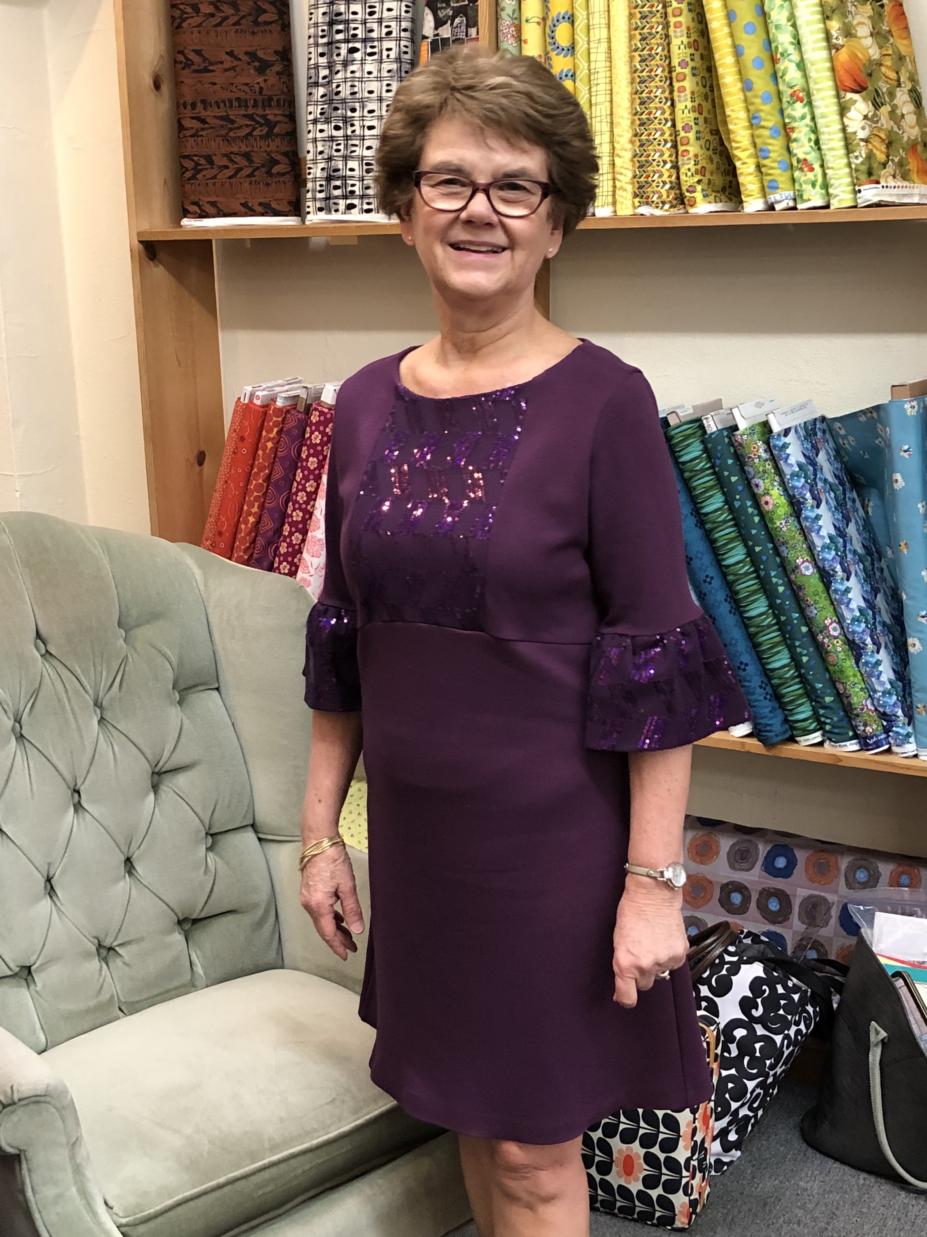Grape Ponte Dress With Sequin Embellishment-KwikSew 4215, View A
