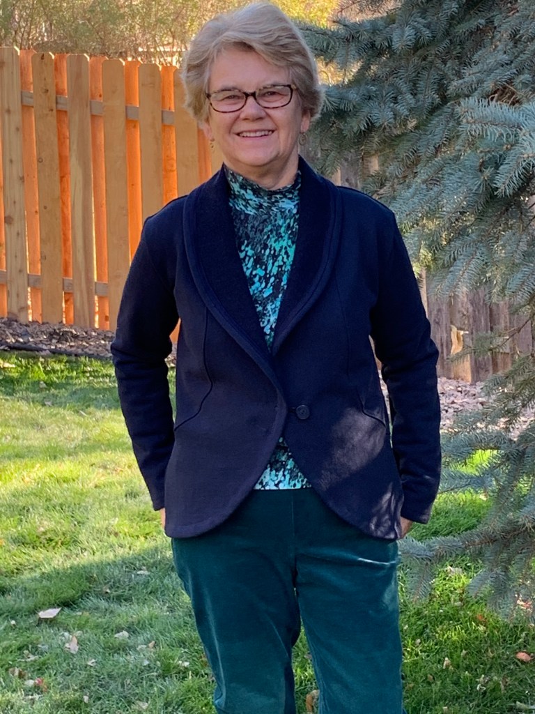Debbie wanted a casual jacket but not another jean jacket. Loved this one from Burda in a stretch olive brown denim.