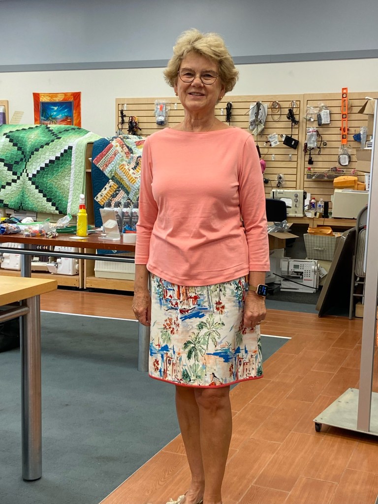 Make the Melrose Top by Itch to Stitch (pattern provided) and serge/sew an easy to wear summer top. We’ll cover techniques for bias neck binding, French seams, and band application, plus learn hands-on how to order and work with a large format printing of a PDF pattern.