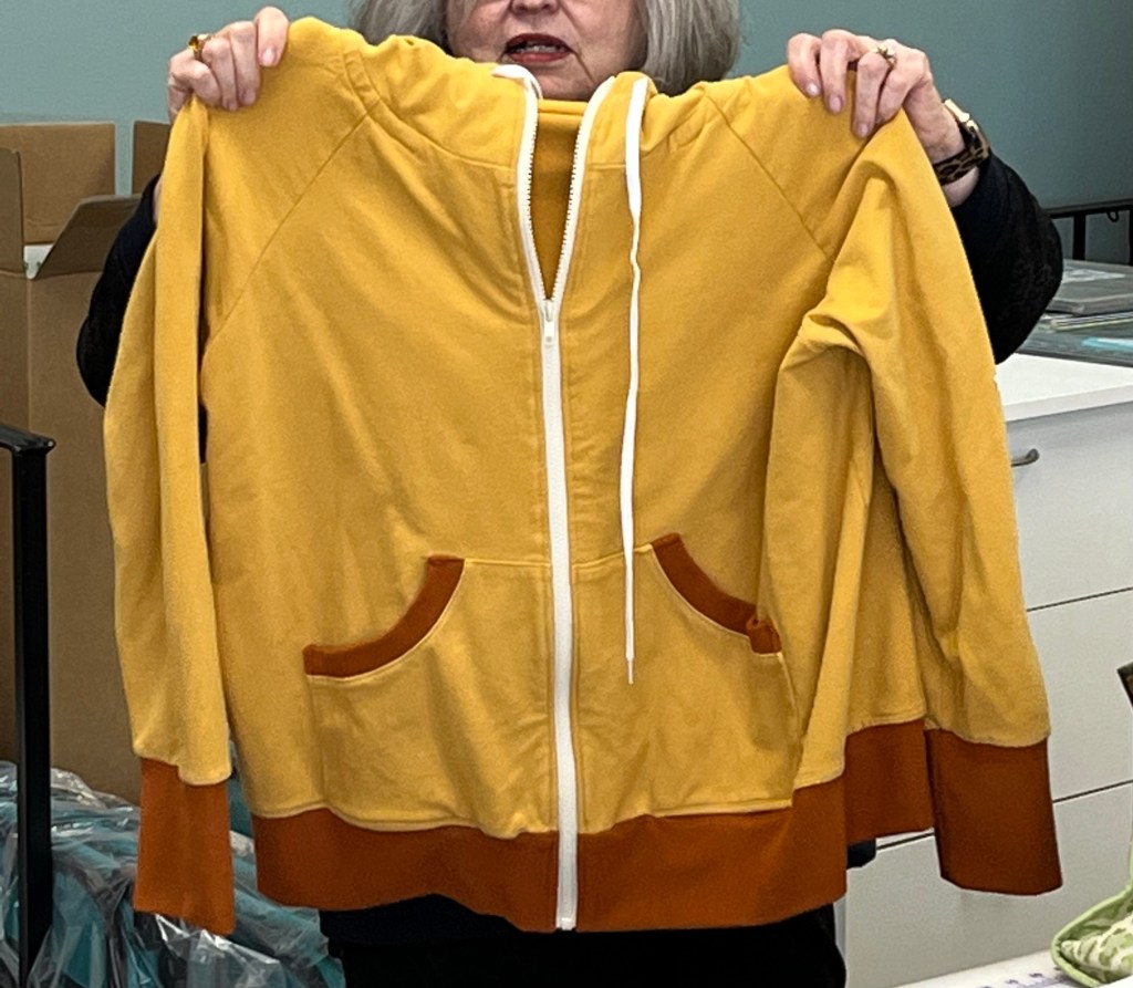 2. Sweatershirt: As Debbie said, the sleeves are wide at wrist, neck is overdone but I like the feel of it (the fabric!!) and will remove the band (it’s all too long and looks better without) and put a tuck in the sleeve with a band as that makes it more snuggly 🙂